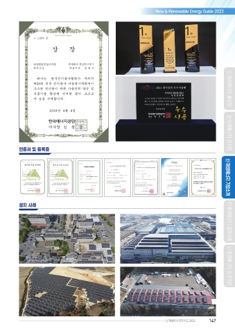New & Renewable Energy Guide 2023 인증서 및 등록증 신·재생에너지 홍보관 신·재생에너지 전시회 설치 사례 신·재생에너지 기업소개 신·재생에너지 설치사례 신·재생에너지가이드 2023 147 신·재생에너지 유관기관