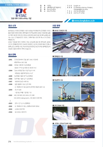 동국S&C는 국내외 풍력발전 시장의 성장을 주도해왔으며, 풍력발전 사업의 ■ WIND TOWER 사업