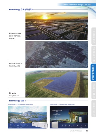 New & Renewable Energy Guide 2024 I Risen Energy 주요 설치 실적 I 중국 저장성 닝하이시 99MW 수상태양광, 신·재생에너지 홍보관 Risen EPC 카자흐스탄 카라간다주 신·재생에너지 전시회 40MW, Risen EPC 신·재생에너지 기업소개 독일 볼테크 신·재생에너지 설치사례 9MW, Risen EPC I Risen Energy ESS I 신·재생에너지 유관기관 신·재생에너지가이드 2024 99