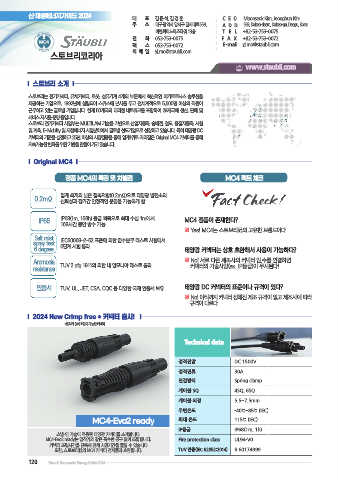 또한, 스토브리社의 MC4 커넥터 전제품과 호환됩니다. TUV 인증(IEC 62852:2014) R 60174999