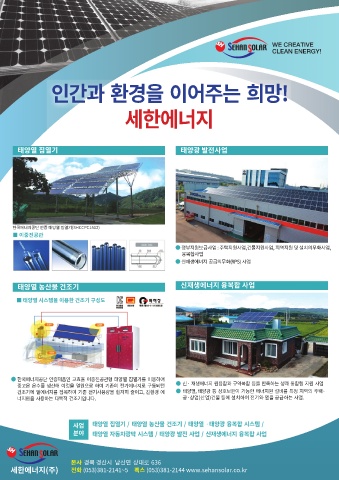 세한에너지(주) 전화 (053)381-2141~5 팩스 (053)381-2144 www.sehansolar.co.kr