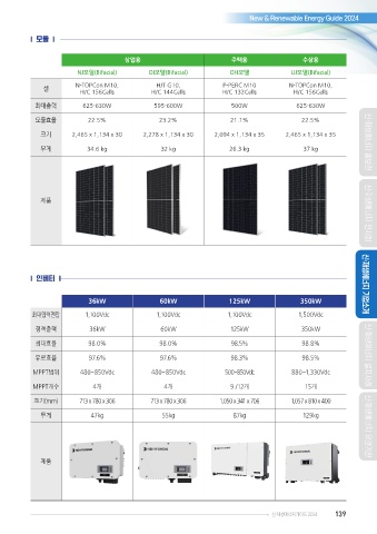 NJ모델(Bifacial) OI모델(Bifacial) OH모델 UJ모델(Bifacial)