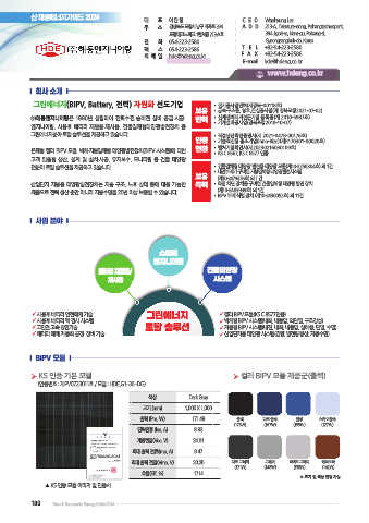 전분야 토탈 솔루션을 제공하고 있습니다. • 건물일체형 태양광 발전용 태양광 모듈(제10-2258304호) 외 1건