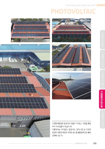 New & Renewable Energy Guide 2024 PHOTOVOLTAIC 신·재생에너지 홍보관 신·재생에너지 전시회 신·재생에너지 기업소개 지붕형 태양광은 공장이나 건물의 비어있는 지붕을 활용 신·재생에너지 설치사례 하여 수익창출이 가능합니다. 신·재생에너지 유관기관 이엘티㈜는 자가발전, 발전사업, 임대사업 등 다양한 형태의 지붕형 태양광 구축을 원스톱 통합솔루션을 통해 진행해드립니다. 신·재생에너지가이드 2024 255