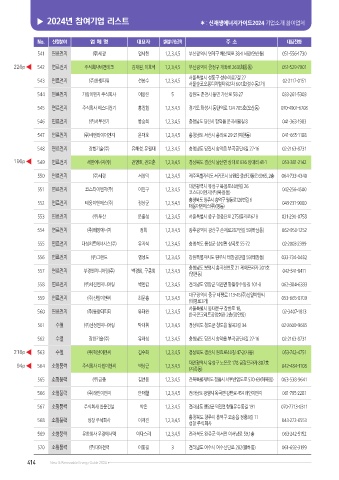 No. 신청분야 업 체 명 대표자 설비설치가능권역 주 소 대표전화