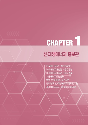 신·재생에너지 홍보관 CHAPTER CHAPTER1 1 한국에너지공단 NEXTAGE 녹색에너지체험관 - 광주전남 녹색에너지체험관 - 대구경북 서울에너지드림센터 영덕 신·재생에너지전시관 전라남도 신·재생에너지 홍보전시관 제주에너지공사 CFI에너지미래관