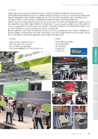 로 성장을 거듭해왔다. 이번 행사에도 태양광 전지와 인버터, 태양광 발전소에서 그리드 인프라 및 통합에 이르기까지 관련 산업계의 동향, 수익성 있는