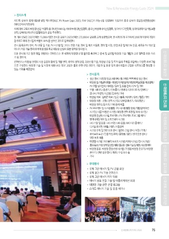 으로 구성된다. 태양광 기술 및 시장에 대한 최신 정보 교류는 물론 관련 산업 전문가, 기업가 및 동종 업계 종사자들과 긴밀한 네트워크를 형성할 수 신·재생에너지 홍보관