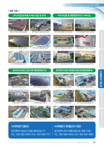 대구 유가면 태양광(916kW) 경산시 진량 태양광(2,897kW) 대구 피크저감용 ESS(2.0MWh) 대구 피크저감용 ESS(2.0MWh) 신·재생에너지 전시회